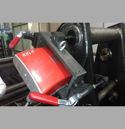 - Toggle clamps used for locking and unlocking of machine on chassis for hands free marking.